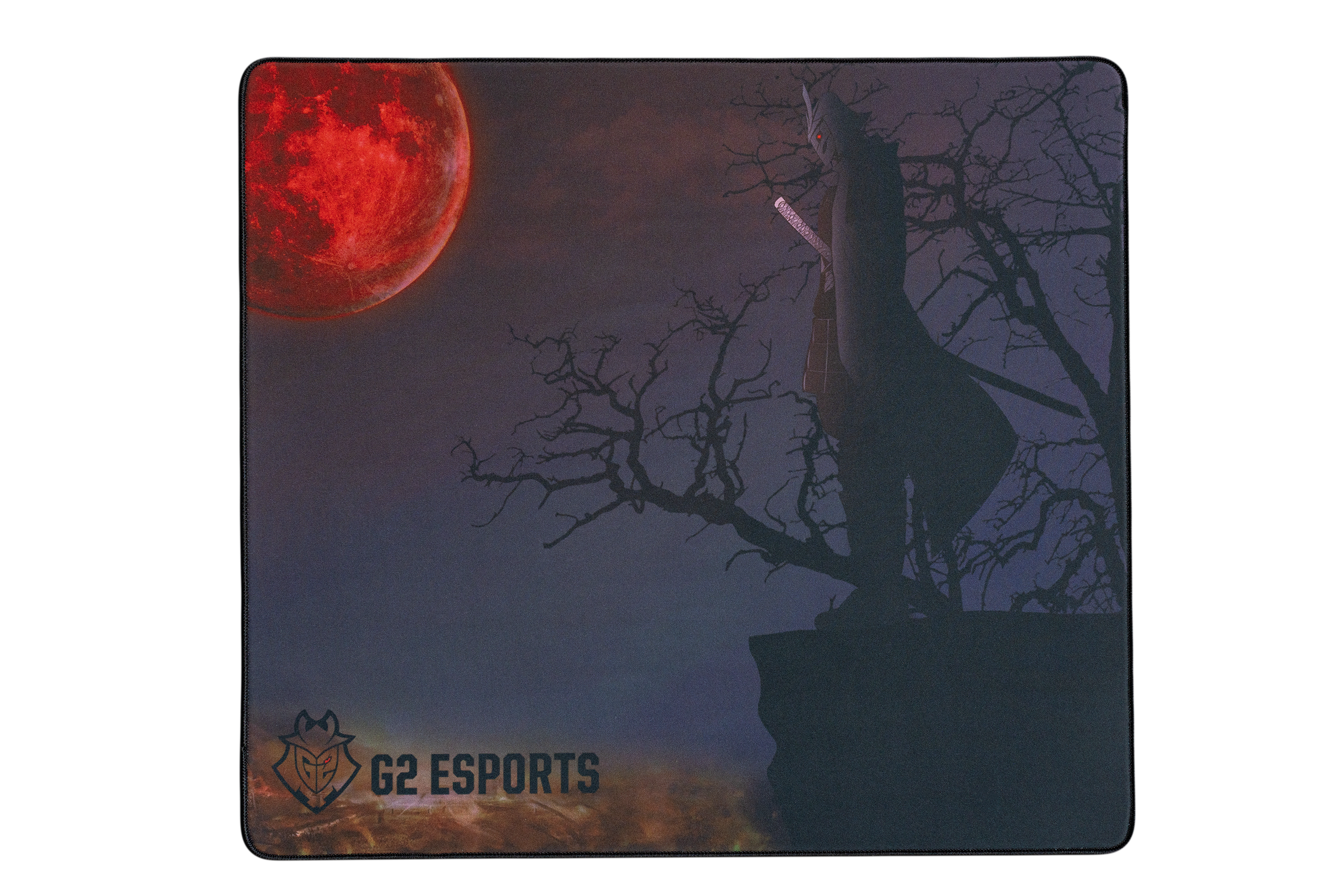 G2 energy meets cinematic style. The G2 Vanguard mousepad features a lone samurai overlooking a glowing horizon, blending dark tones with sharp orange accents for a dramatic, atmospheric look. It delivers smooth glide, durable stitching, and that unmistakable G2 edge — perfect for fans who want performance with personality.